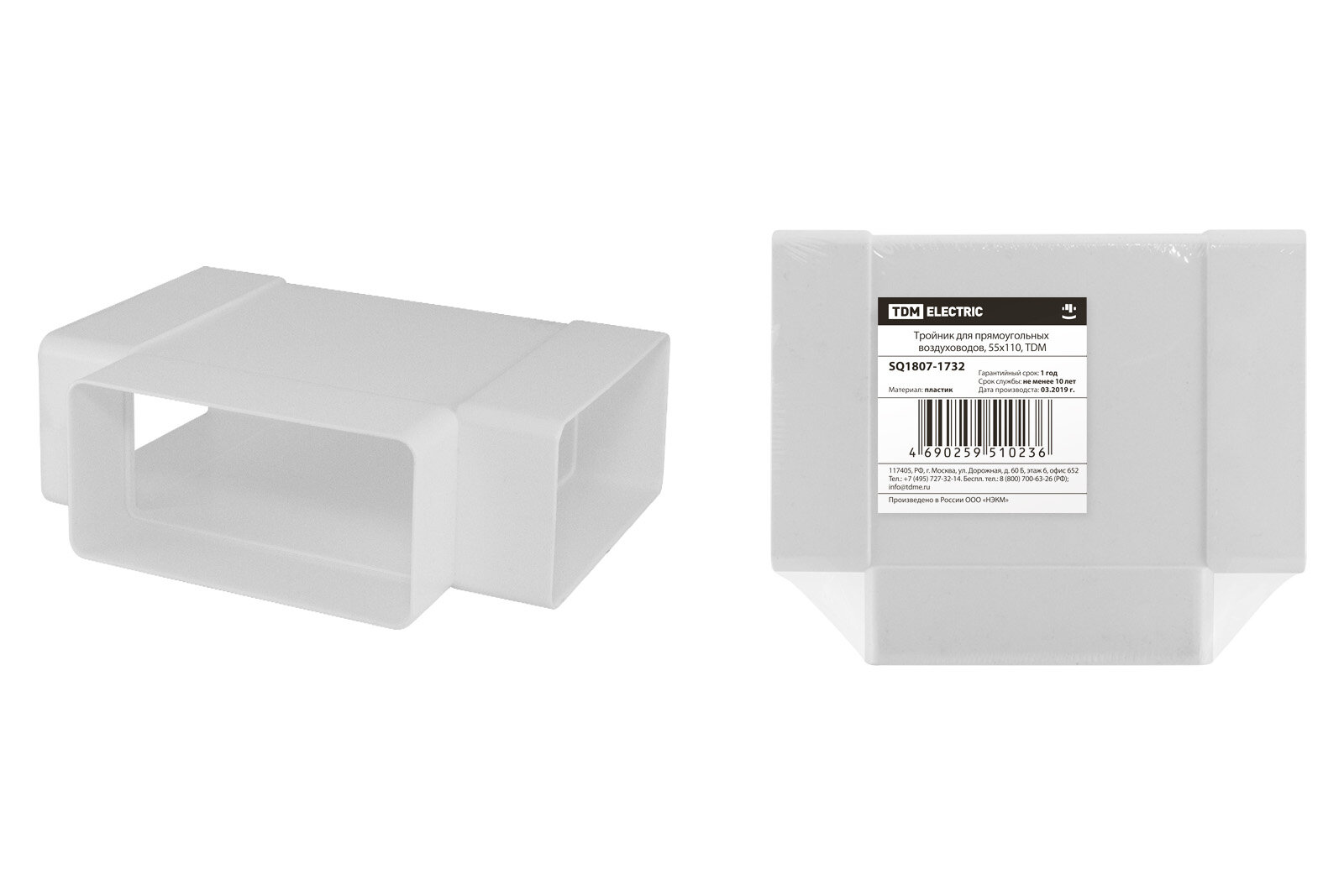 Тройник для прямоугольных воздуховодов, 55х110, TDM информация: