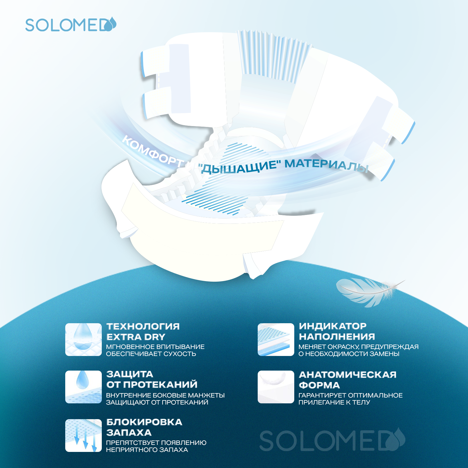 Подгузники для взрослых Solomed Standart M, 30 шт (90-120 см) / По сертификатам ФСС, ТСР 1 000 ₽