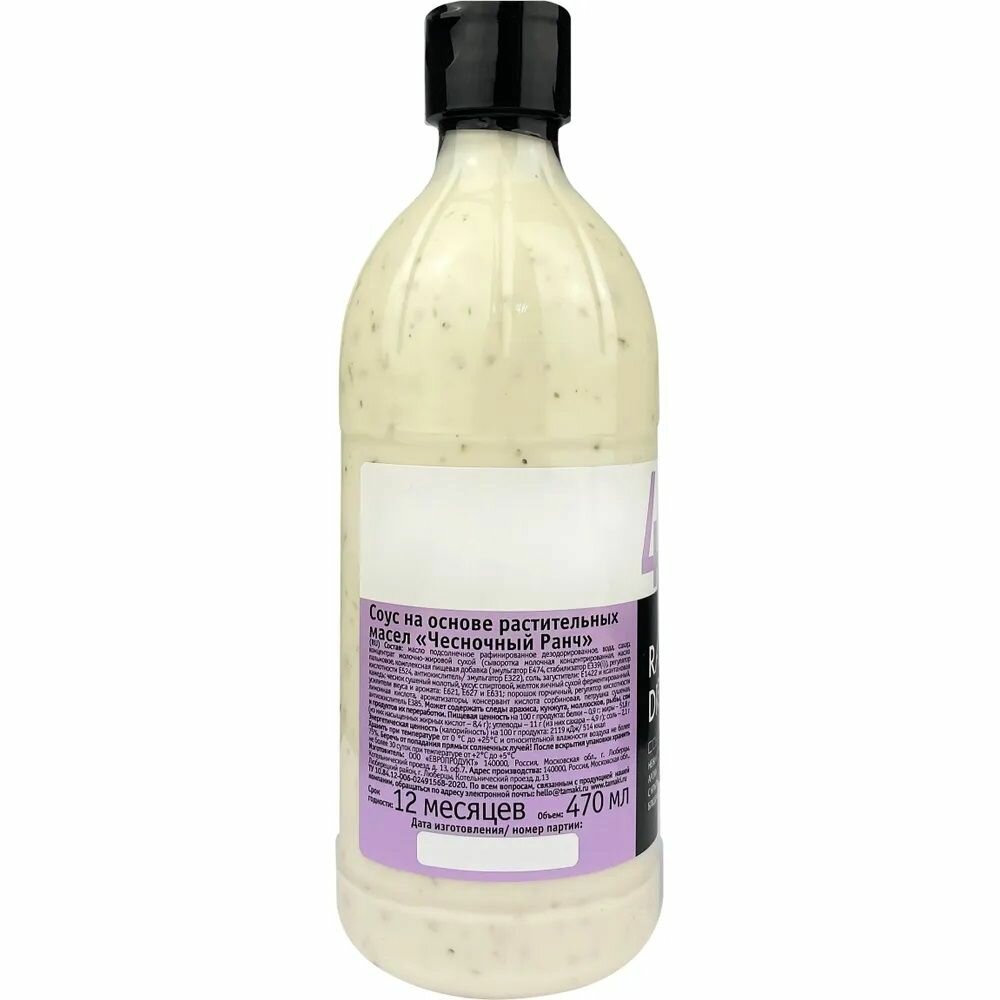 Соус Чесночный ранч, Tamaki, Россия, 470 мл х 2шт информация:
