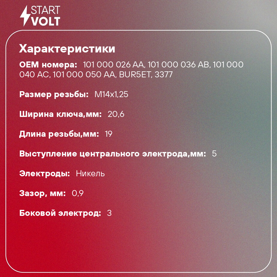 Свеча зажигания для автомобилей VAG Passat B3/B4 (88-) 1.6i/1.8i/Golf III (91-) 1.4i/1.8i VSP 1817 StartVolt информация: