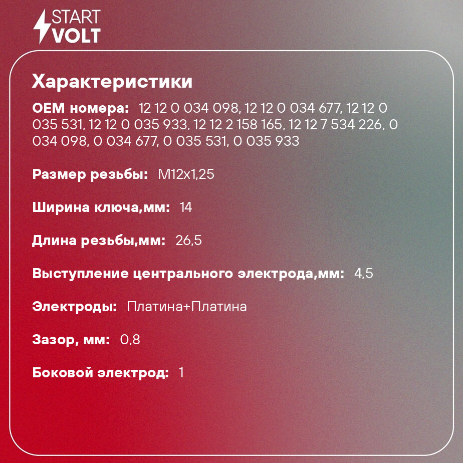 Свеча зажигания для автомобилей Peugeot 308 (07-)/Citroen C4 II (09-) 1.6i Pt+Pt VSP 2002 StartVolt информация: