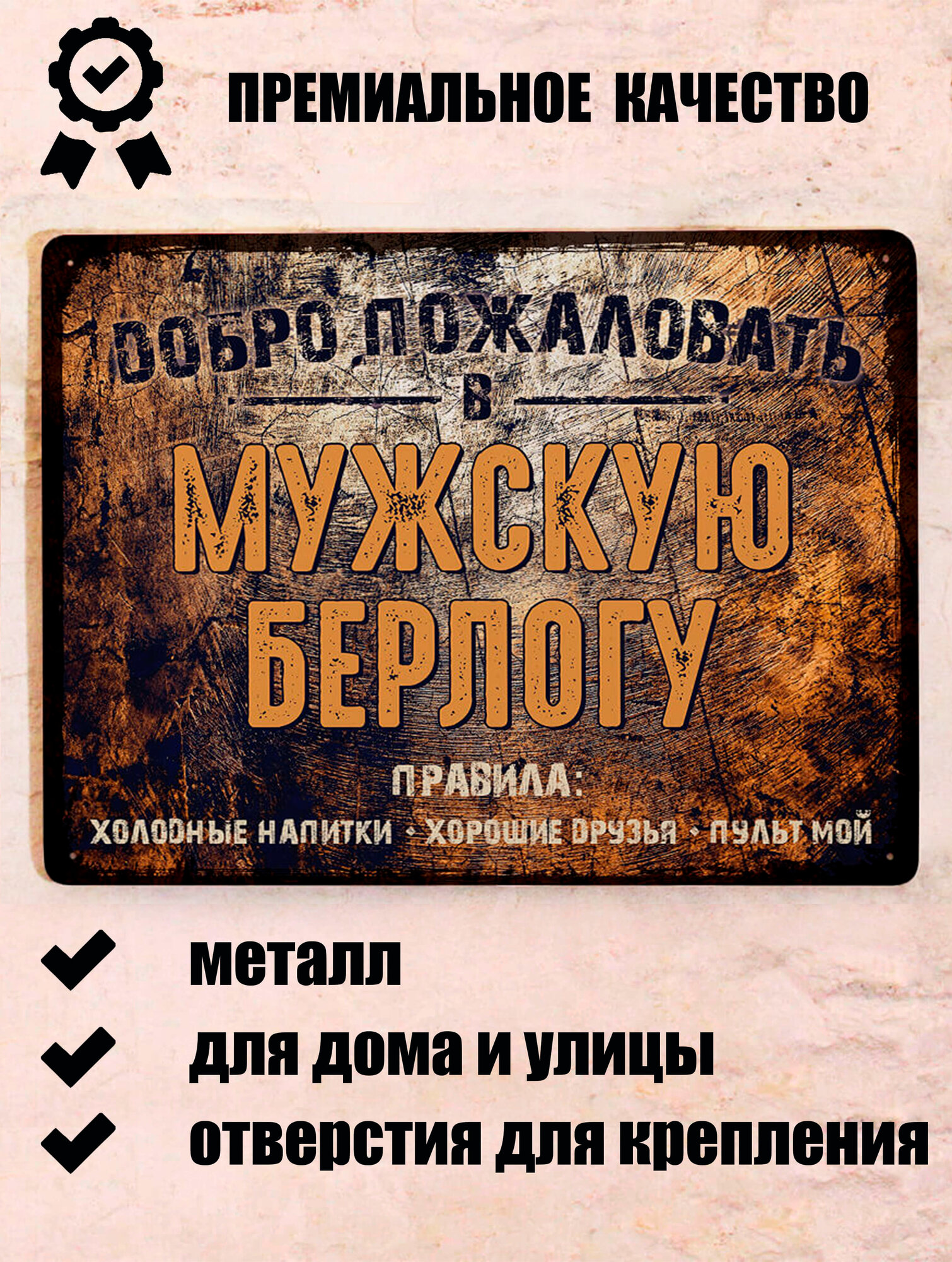 Отзывы на Жестяная табличка для дома, гаража, дачи и мастерской Мужская берлога, металл, 20х30 см