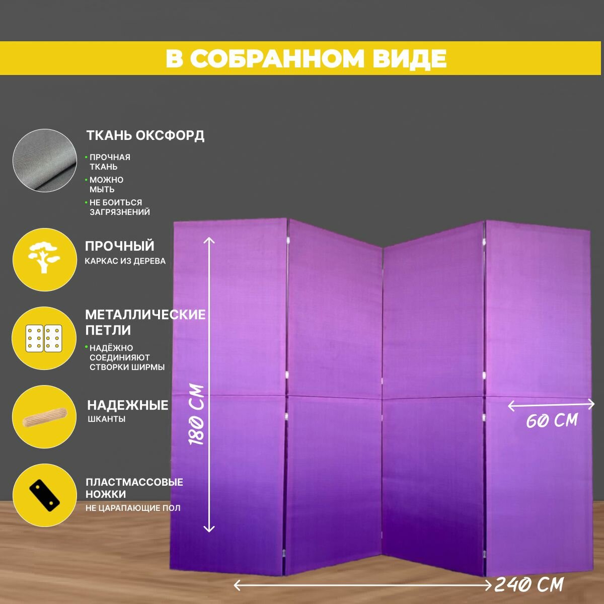 Ширма перегородка секционная раскладная для зонирования. 4 створки. информация: