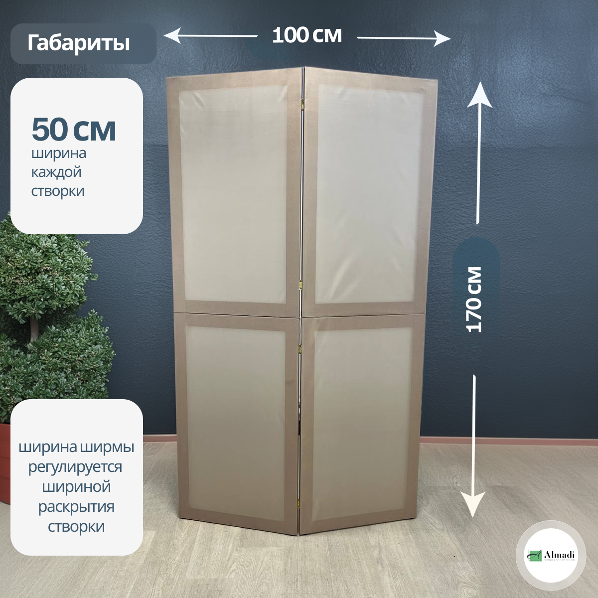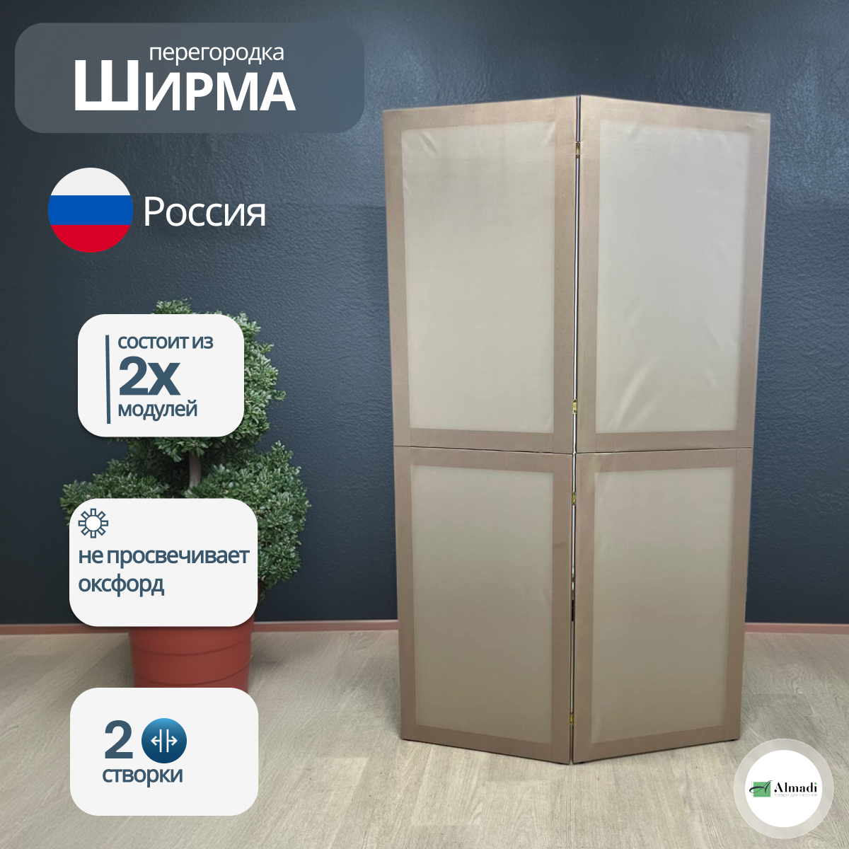 Ширма для зонирования 2 створки, бежевая, модульная информация: