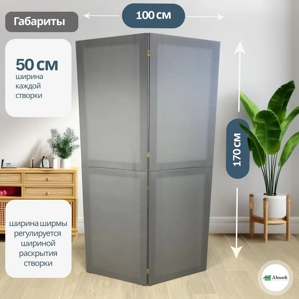 10 цен на Ширма перегородка интерьерная для зонирования комнаты серая модульная 2 створки