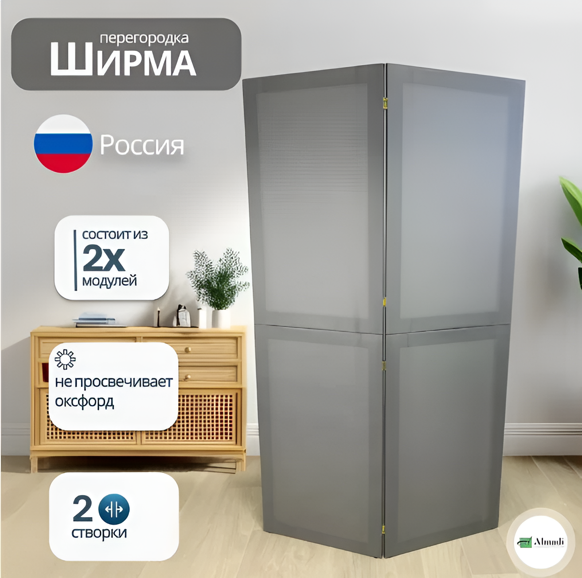 Отзывы на Ширма перегородка интерьерная для зонирования комнаты серая модульная 2 створки