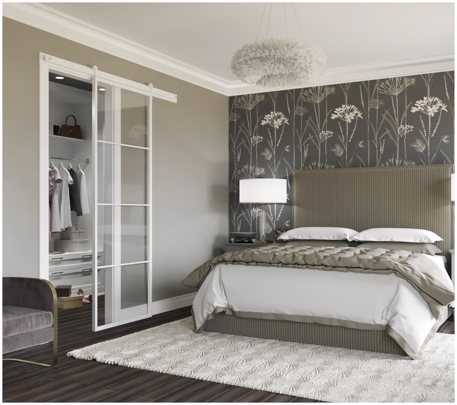 Перегородка 100х230 см межкомнатная LOFT KREL закаленное прозрачное стекло, белый цвет