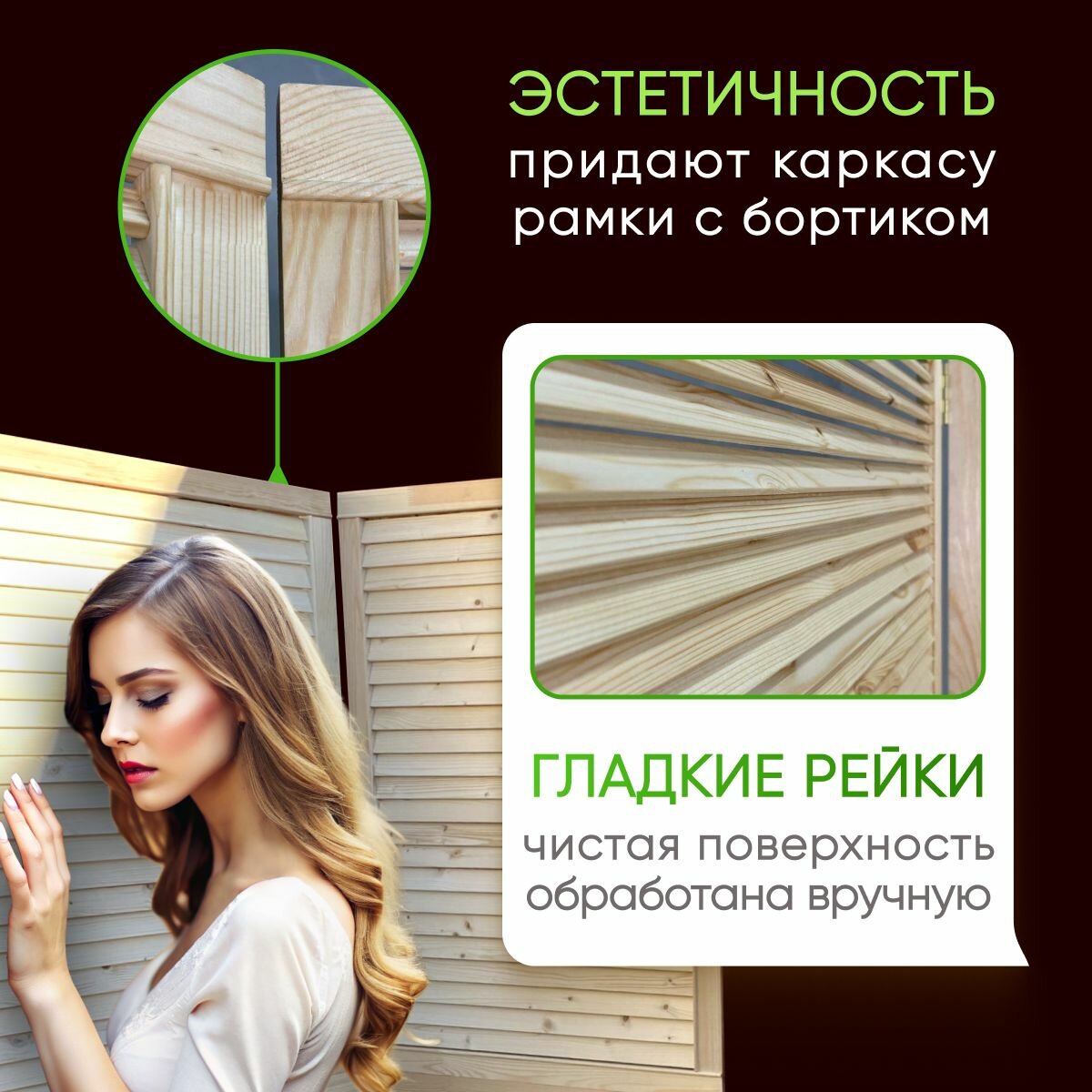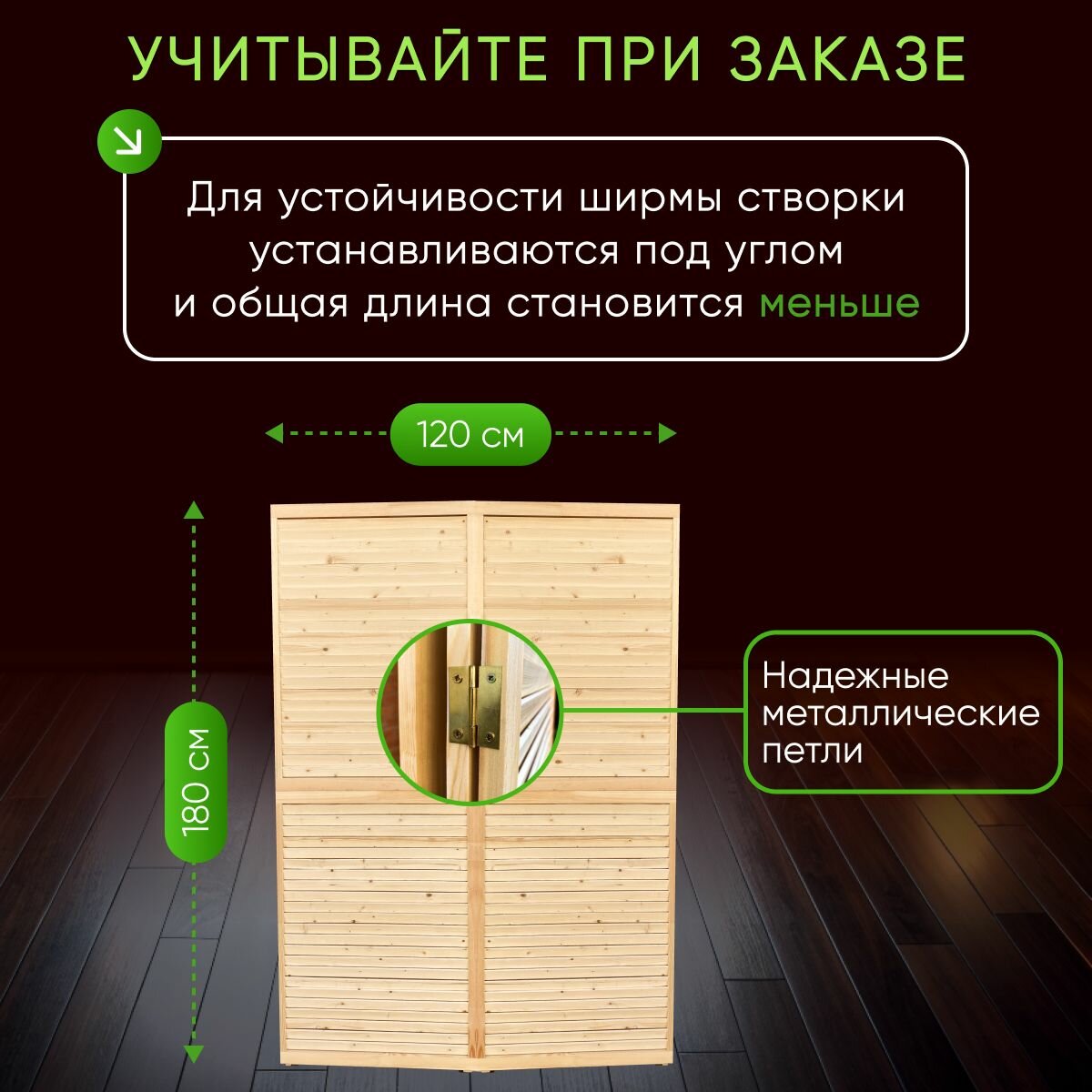Ширма складная 2-секционная деревянная для зонирования информация: