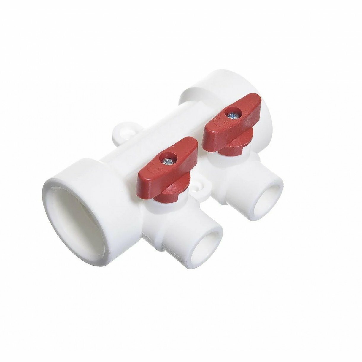 Коллектор универсальный 32х20 - 2 выхода полипропиленовый с красными и синими ручками для отсечных кранов Valfex