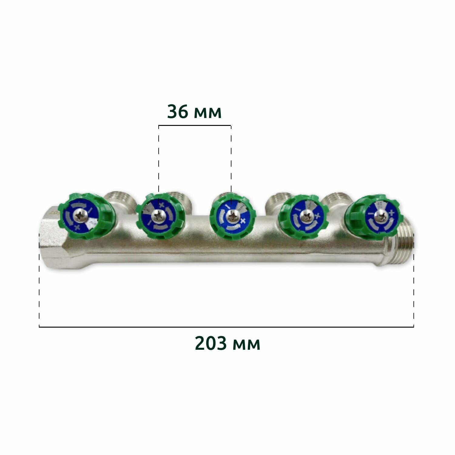 Коллекторный блок из нержавеющей стали 1" с регулирующими и балансировочными клапанами / 5 выходов Valfex арт. VF.582.0605