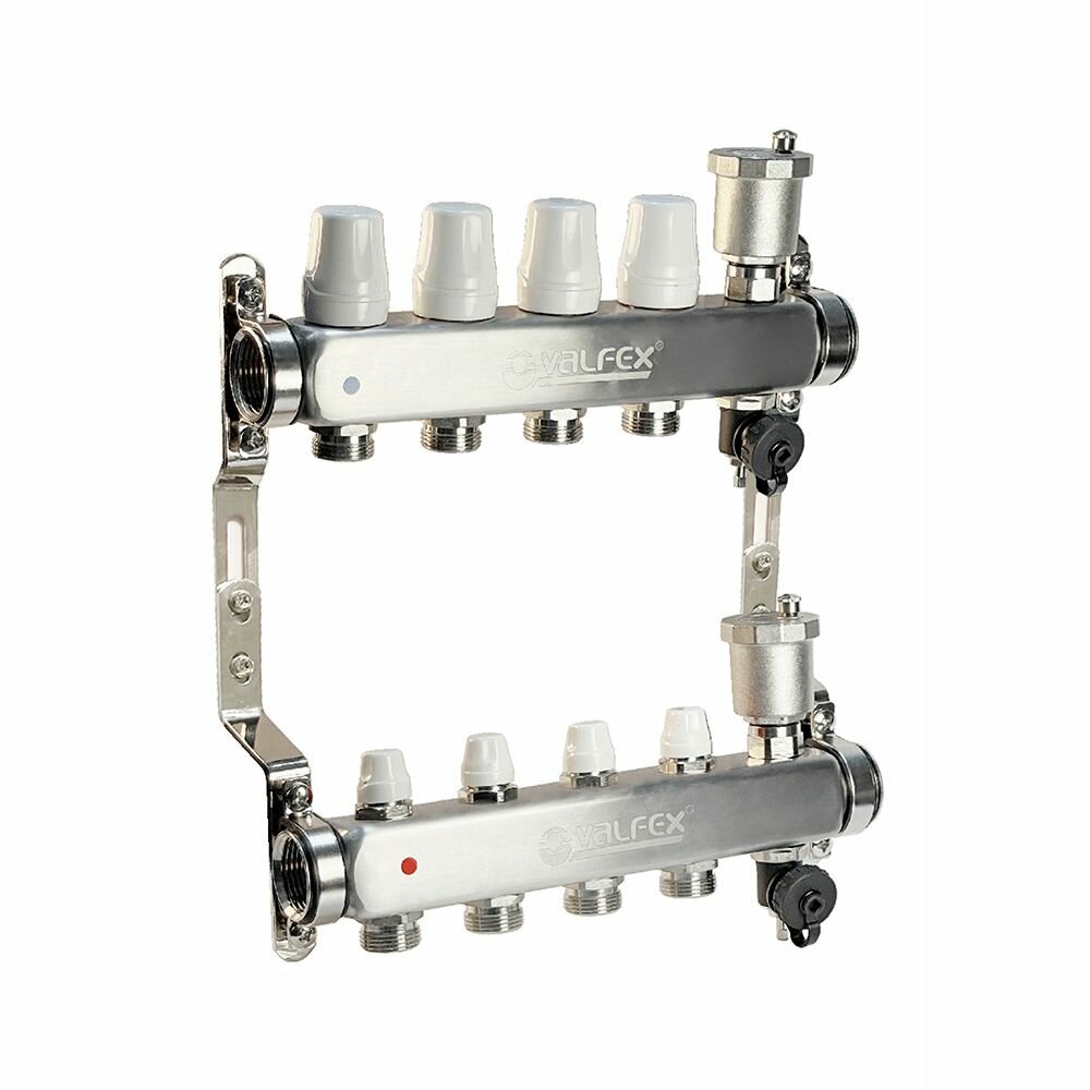 Коллектор Valfex VF.587.0604 с регулирующими клапанами, нержавейка, 1", 4 выхода.