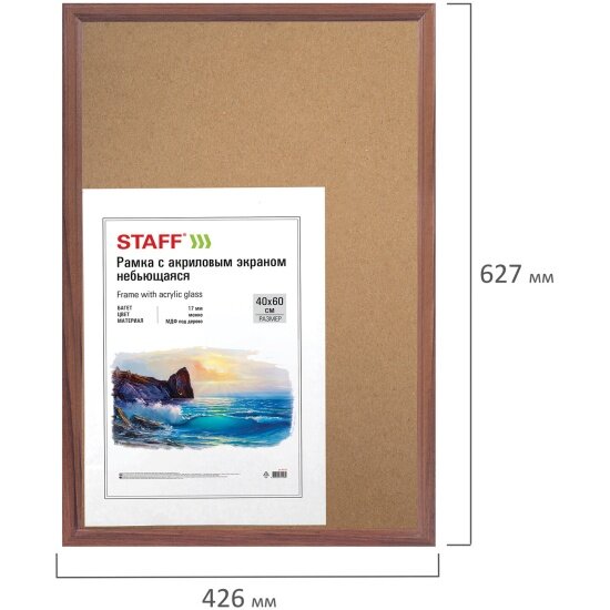 10 цен на Рамка Staff небьющаяся 40х60 см, МДФ под дерево, багет 17 мм, мокко, акриловый экран, "Carven", 391223