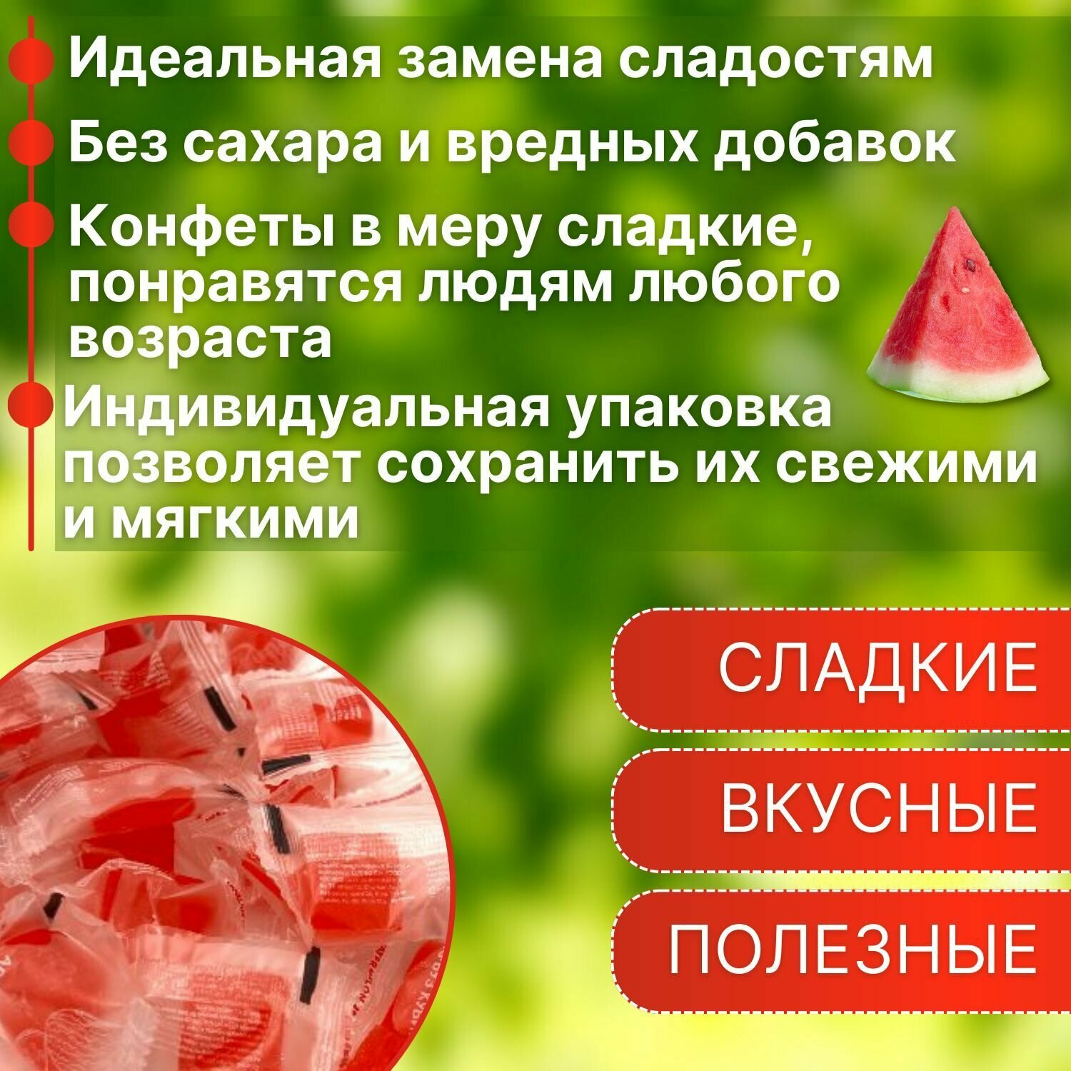 | Состав | Арбуз 80%, желатин, лимонная кислота, натуральный растительный краситель-ароматизатор Арбуз |