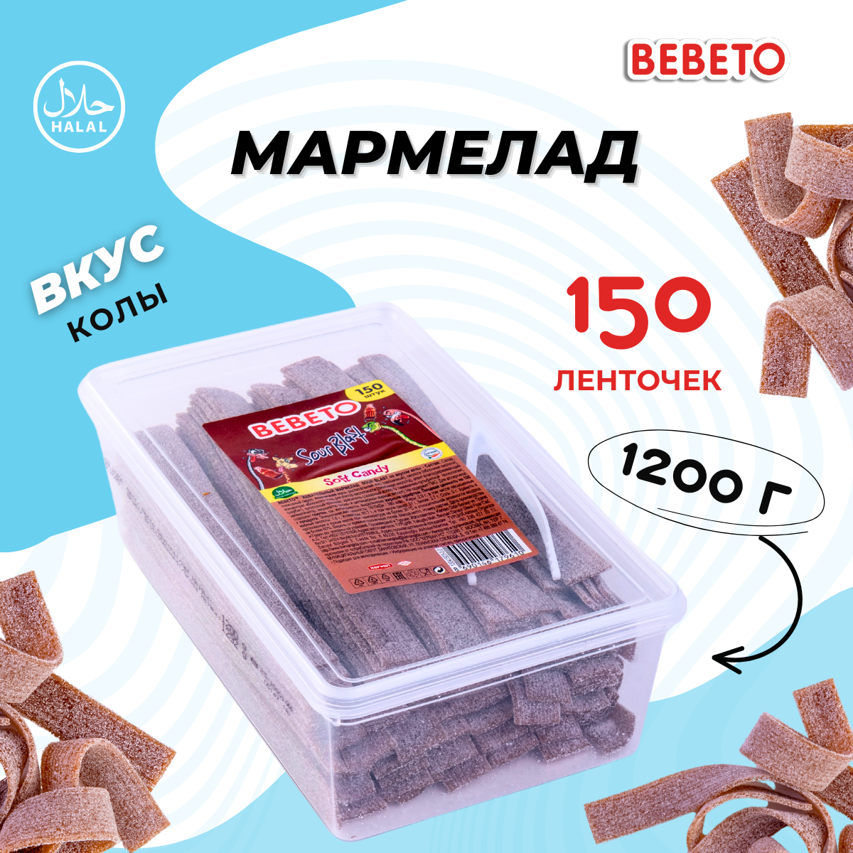 Мармелад жевательный BEBETO "Sour Blast" со вкусом кока-кола, 1,2 кг. информация: