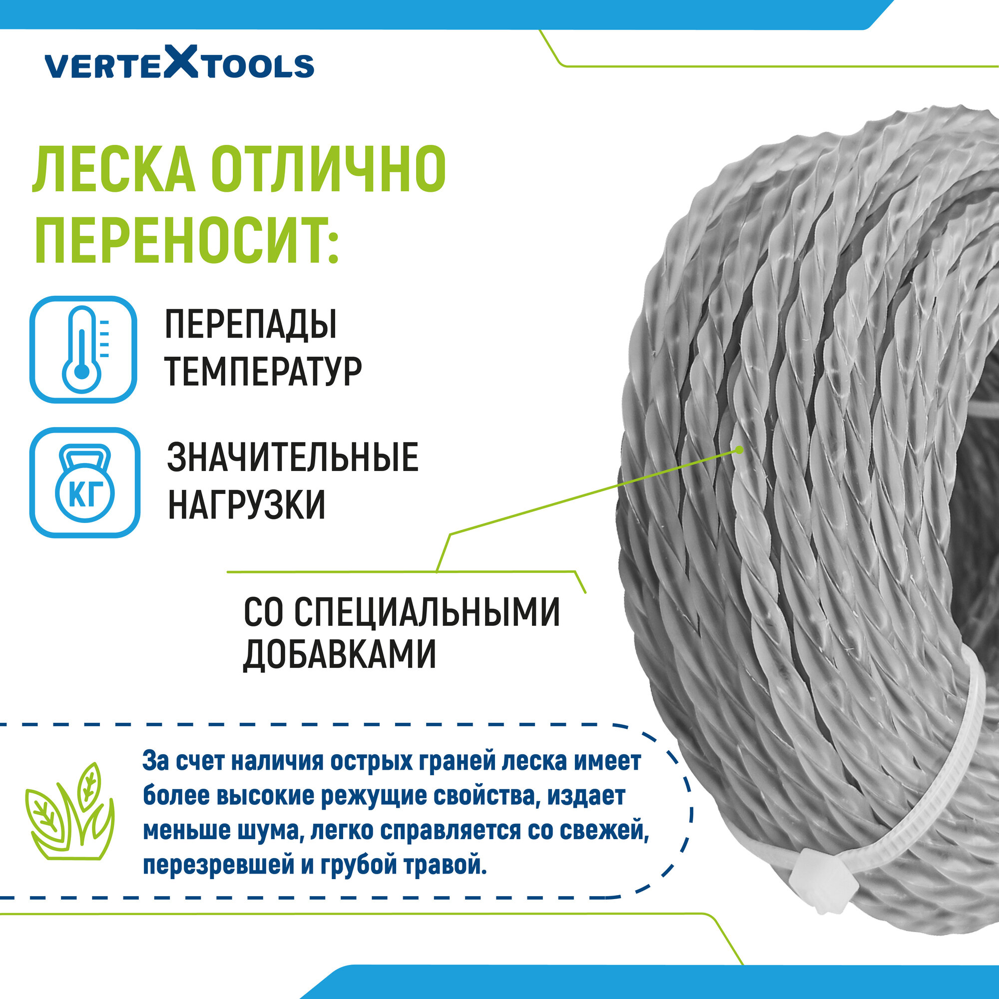 Леска для триммера VertexTools 2,4 мм 15 м витой квадрат с сердечником информация: