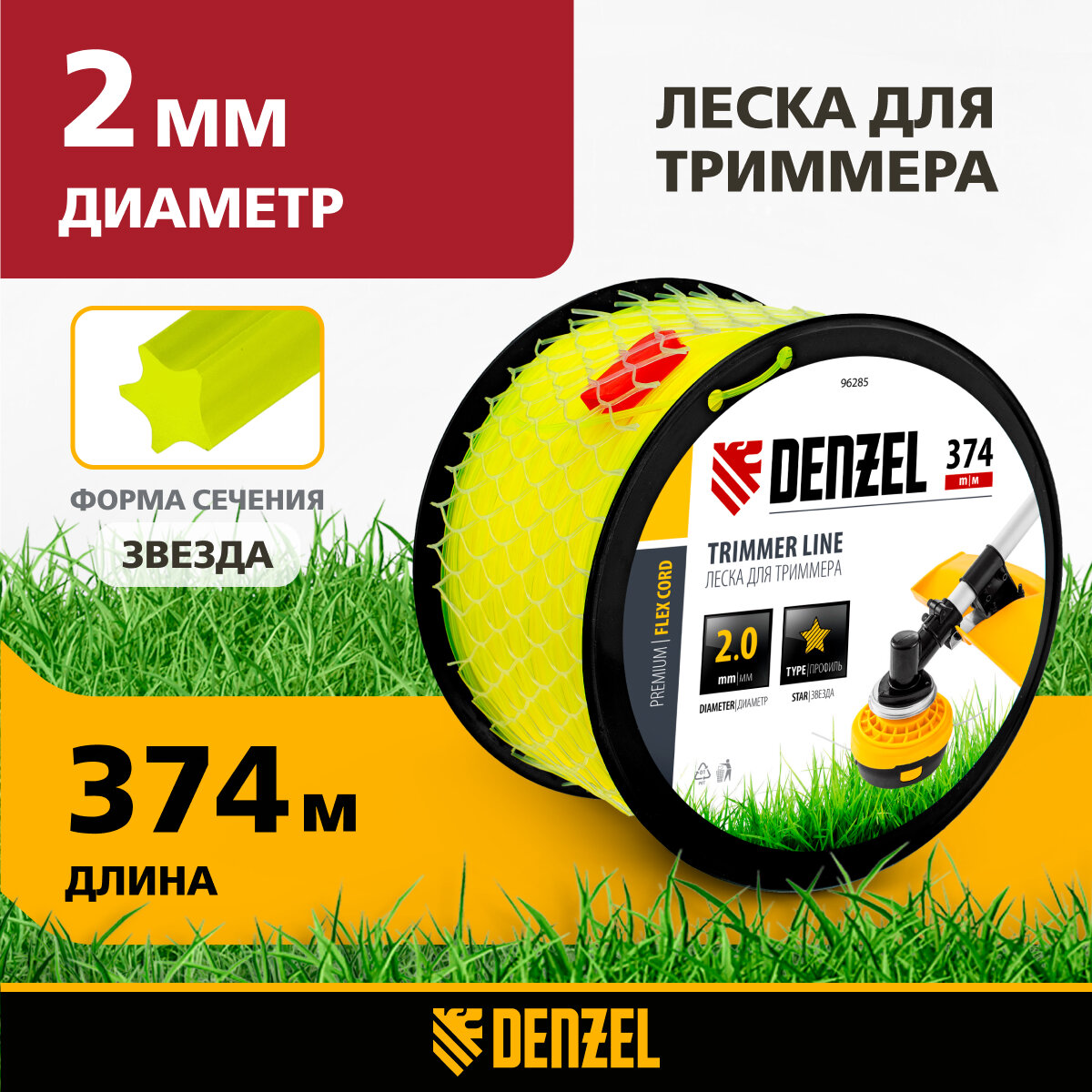 Леска для триммеразвезда, 2,0мм х 374м, на DIN катушке FLEX CORD// Denzel 96285 . информация: