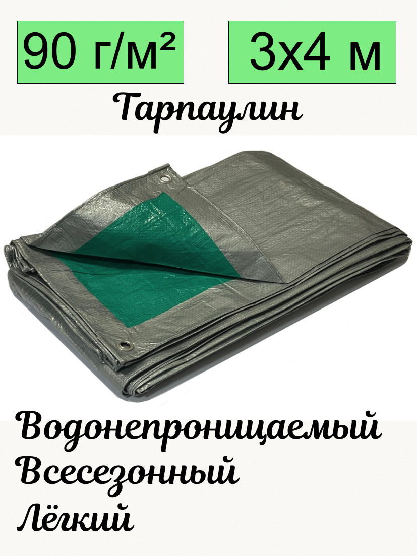 Отзывы на Брезент ROMITECH ЭКО 90 гр/м2 3х4 м, тарпаулин, с люверсами, всесезонный, водонепроницаемый, серо-зеленый