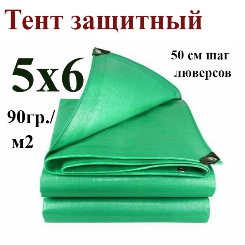 10 цен на Тент укрывной 5х6м, 90 г/м2 с люверсами, Тарпаулин.