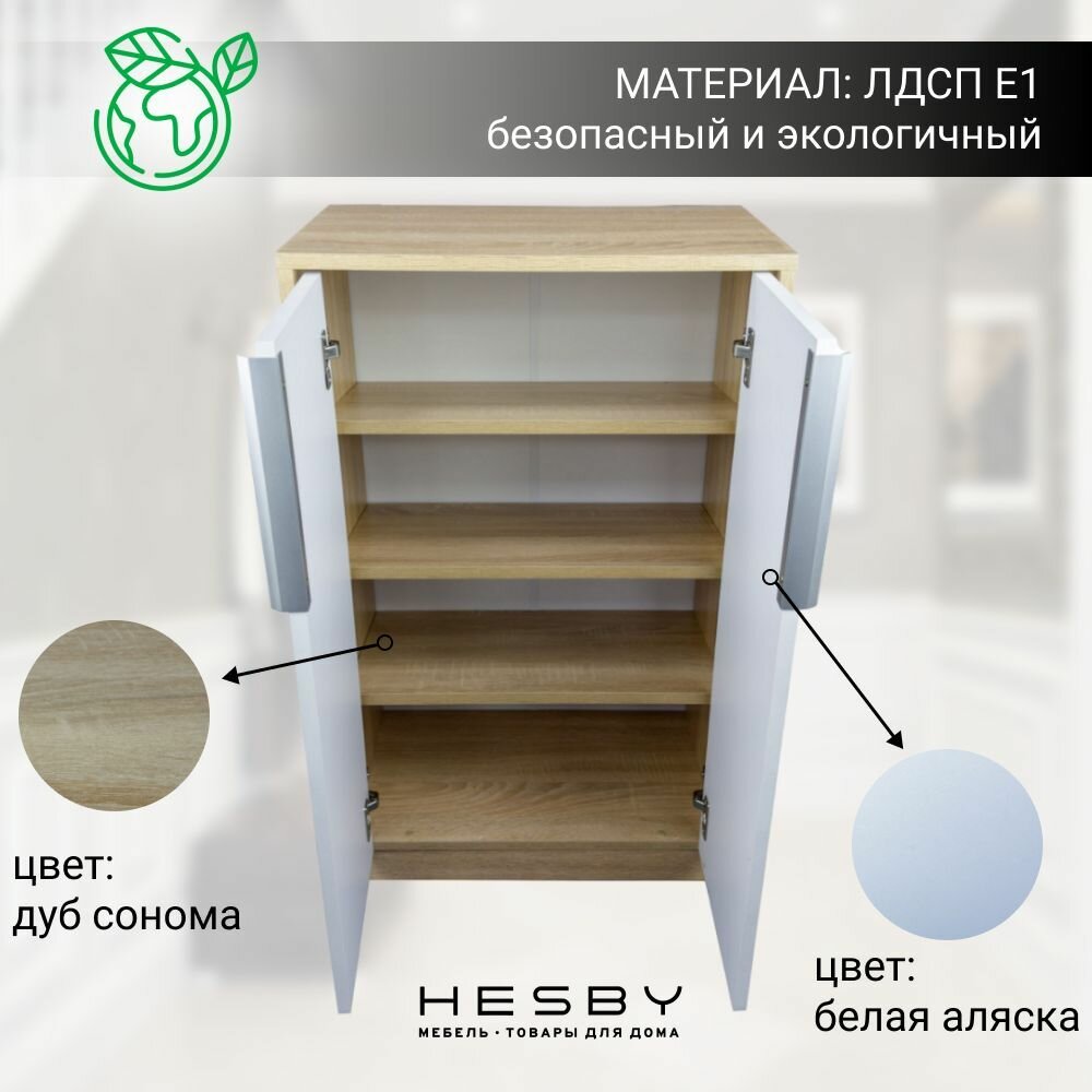 10 цен на Обувница закрытая для прихожей Hesby Nordik с 4 полками. Размер: 53,5х30х90см. Цвет: дуб сонома / белый