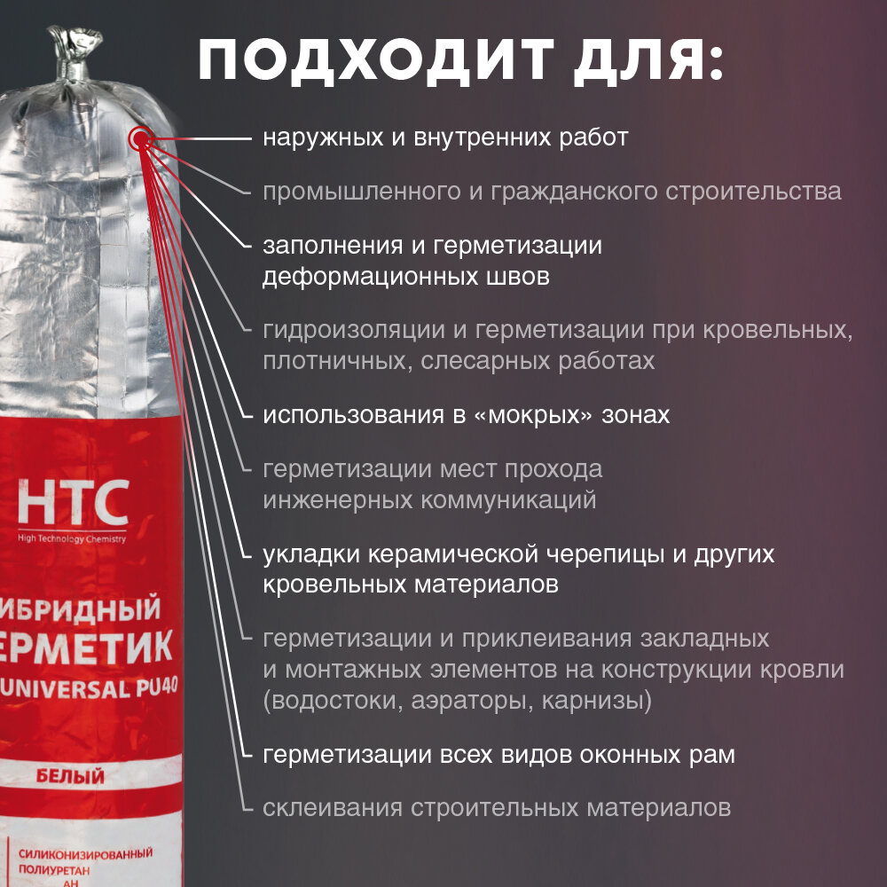 Гибридный герметик HTC Universal PU40 600 мл, белый информация:
