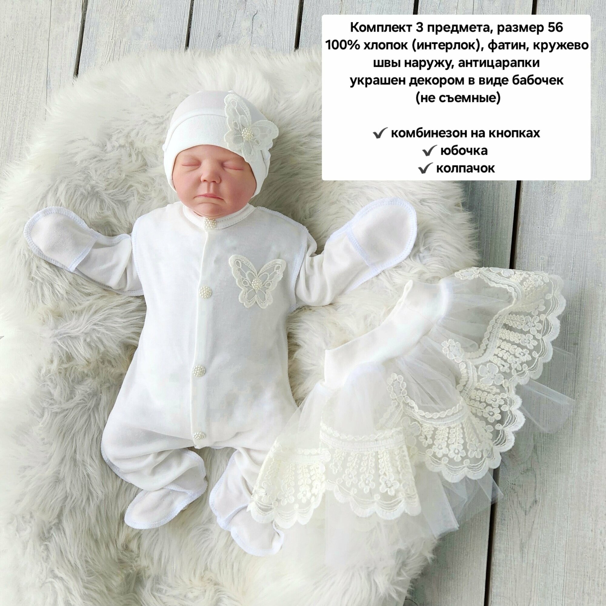 10 цен на Одежда на выписку, 3 предмета, слоновая кость, размер 56