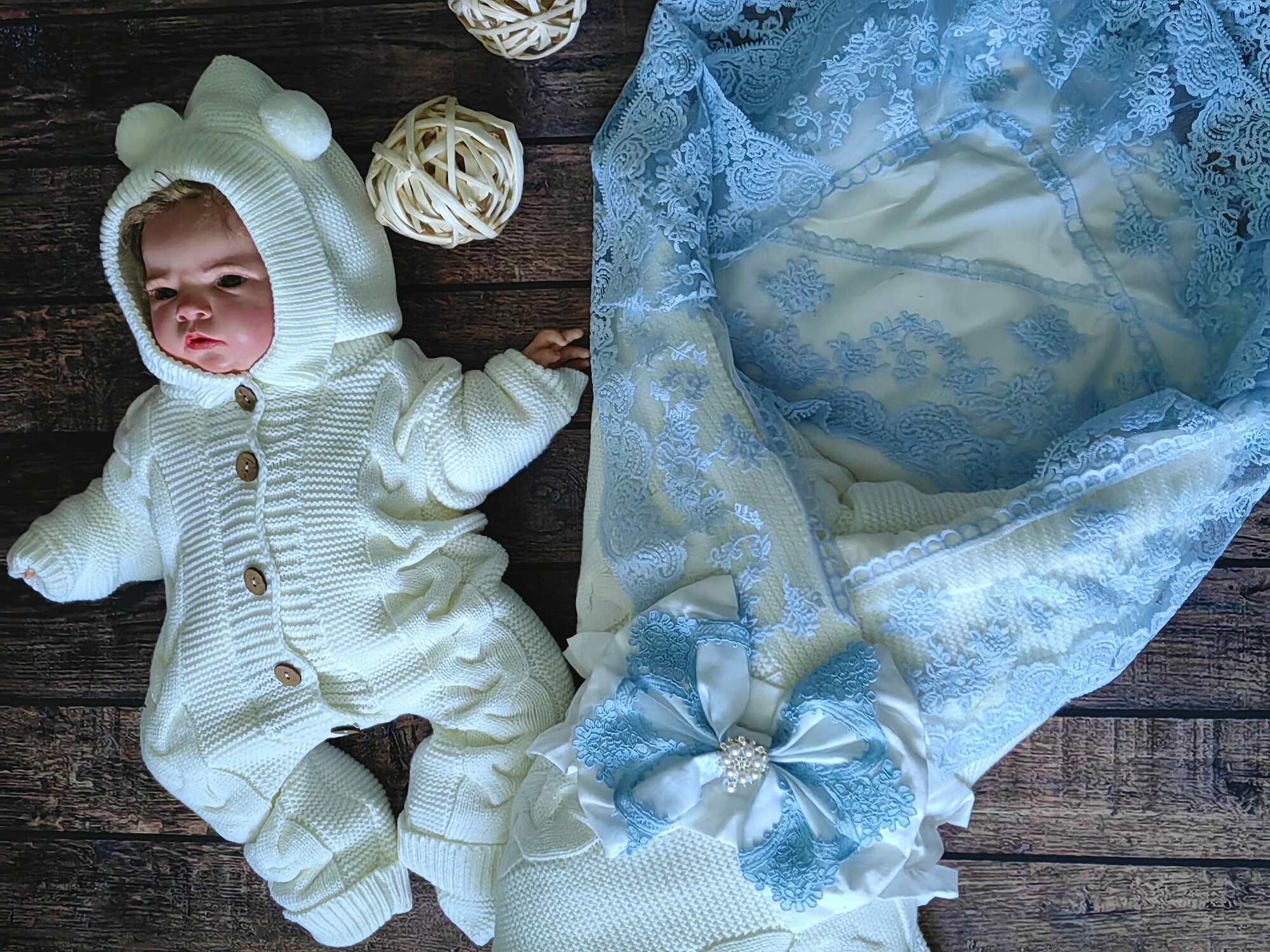 | Комплектация | конверт плед, уголок, резинка бант, комбинензон |