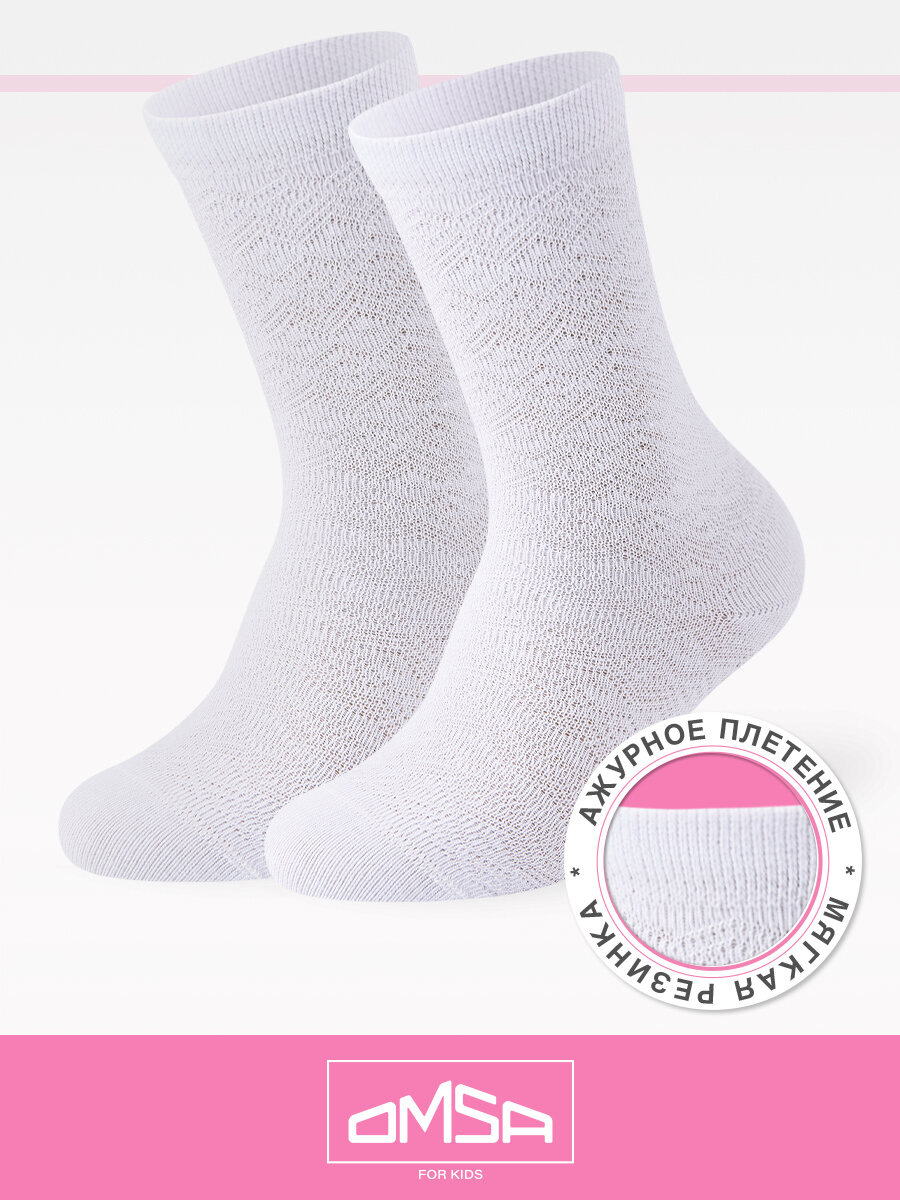 Носки детские OMSA kids Calzino 22A02, для девочки, высокие, ажурные, цветные, хлопок, набор 5 пар, цвет Bianco, размер 27/30 499 ₽