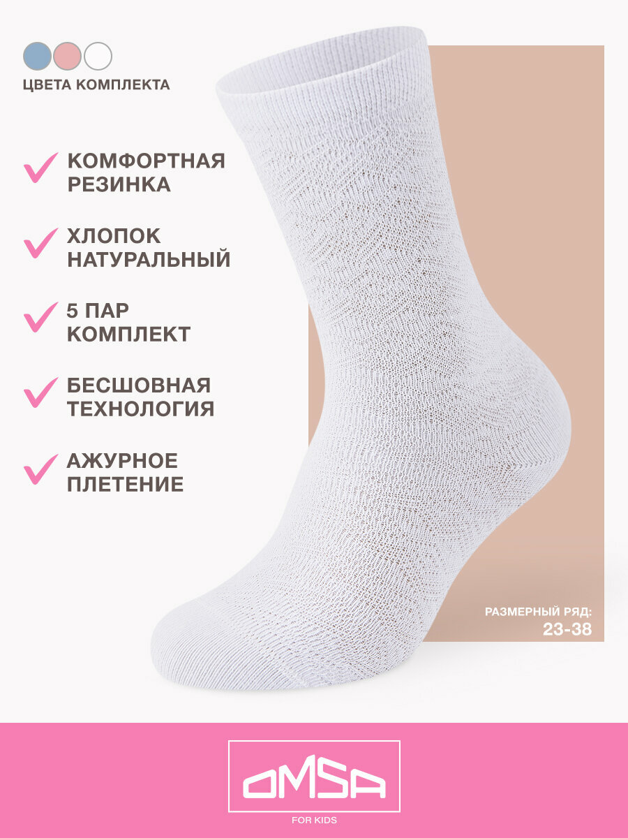 Носки детские OMSA kids Calzino 22A02, для девочки, высокие, ажурные, цветные, хлопок, набор 5 пар, цвет Bianco, размер 31/34 информация: