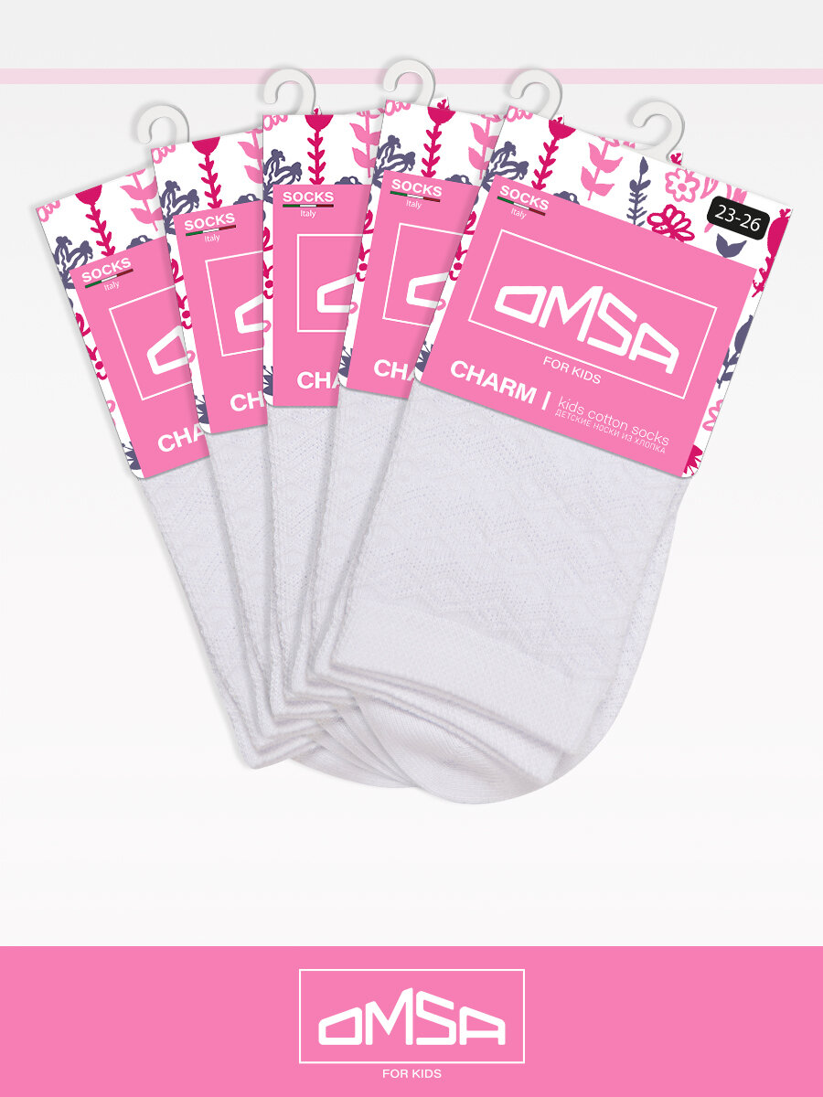 Носки детские OMSA kids Calzino 22A02, для девочки, высокие, ажурные, цветные, хлопок, набор 5 пар, цвет Bianco, размер 27/30 информация: