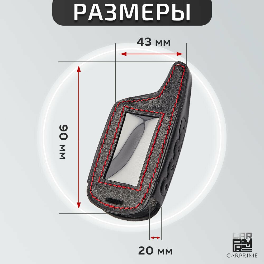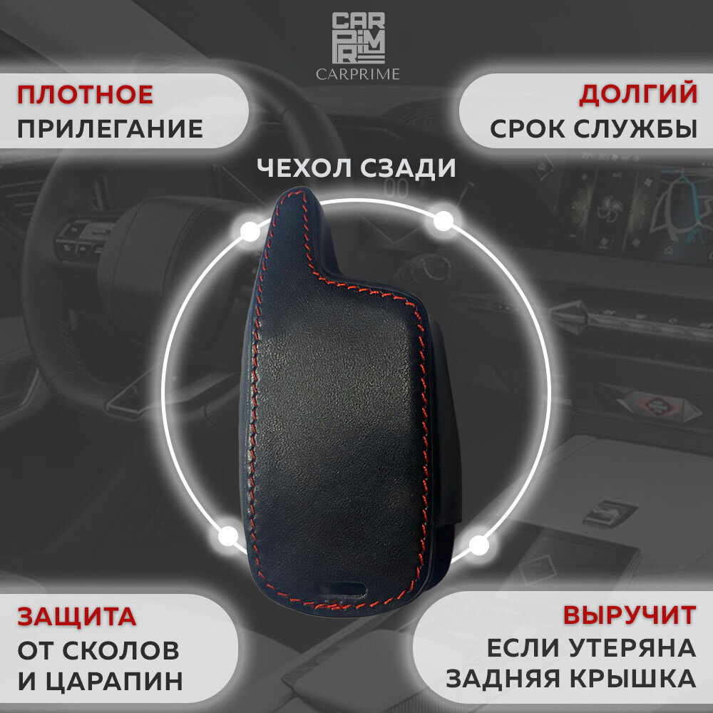 Чехол кожаный Carprime для брелока ( пульта ) автосигнализации Scher-khan Logicar 1/2/3/4 (Красная нить, с защитной пленкой)