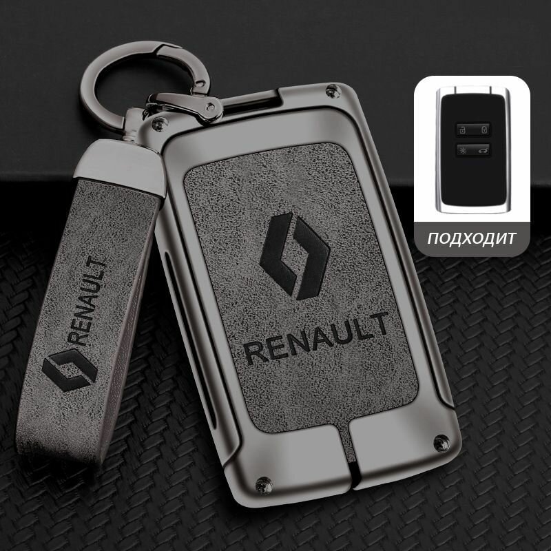 Чехол-брелок для автомобильного ключа Renault Arkana Megane Kaptur Koleos Talisman металлический с пряжкой темно-серый информация: