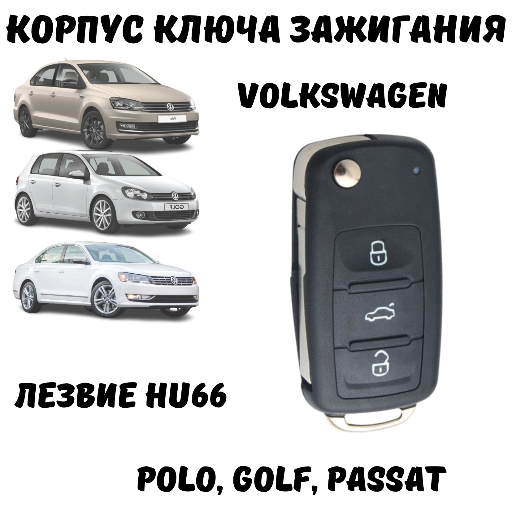 Корпус для ключа зажигания Volkswagen Polo, Golf, Passat, лезвие HU66, 3 кнопки информация: