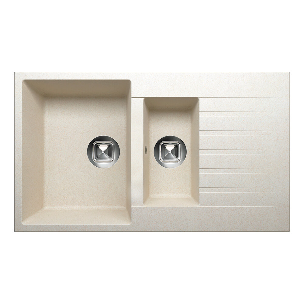 Мойка для кухни TOLERO Classic R-118 каменная врезная квадратная, двухсекционная с крылом. Кварц (№923 Белый)