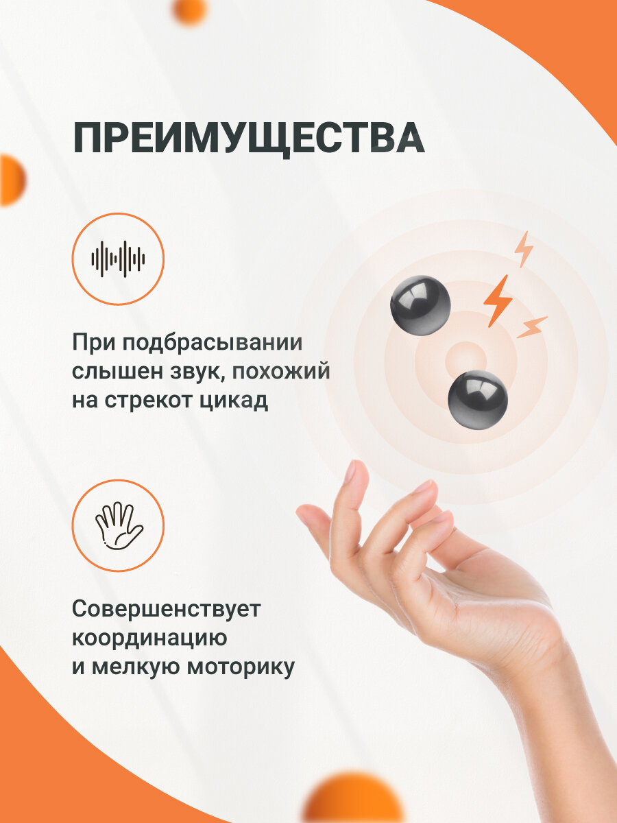| Дополнительная информация | Чтобы услышать "пение цикад", надо эту пару шаров вместе подбросить в воздух. Пока шары в воздухе, они "поют", издают характерное потрескивание, похожее на стрекот цикад. Как только вы поймаете магниты, они замолкают. Чем дольше цикады в воздухе, тем дольше поют. |