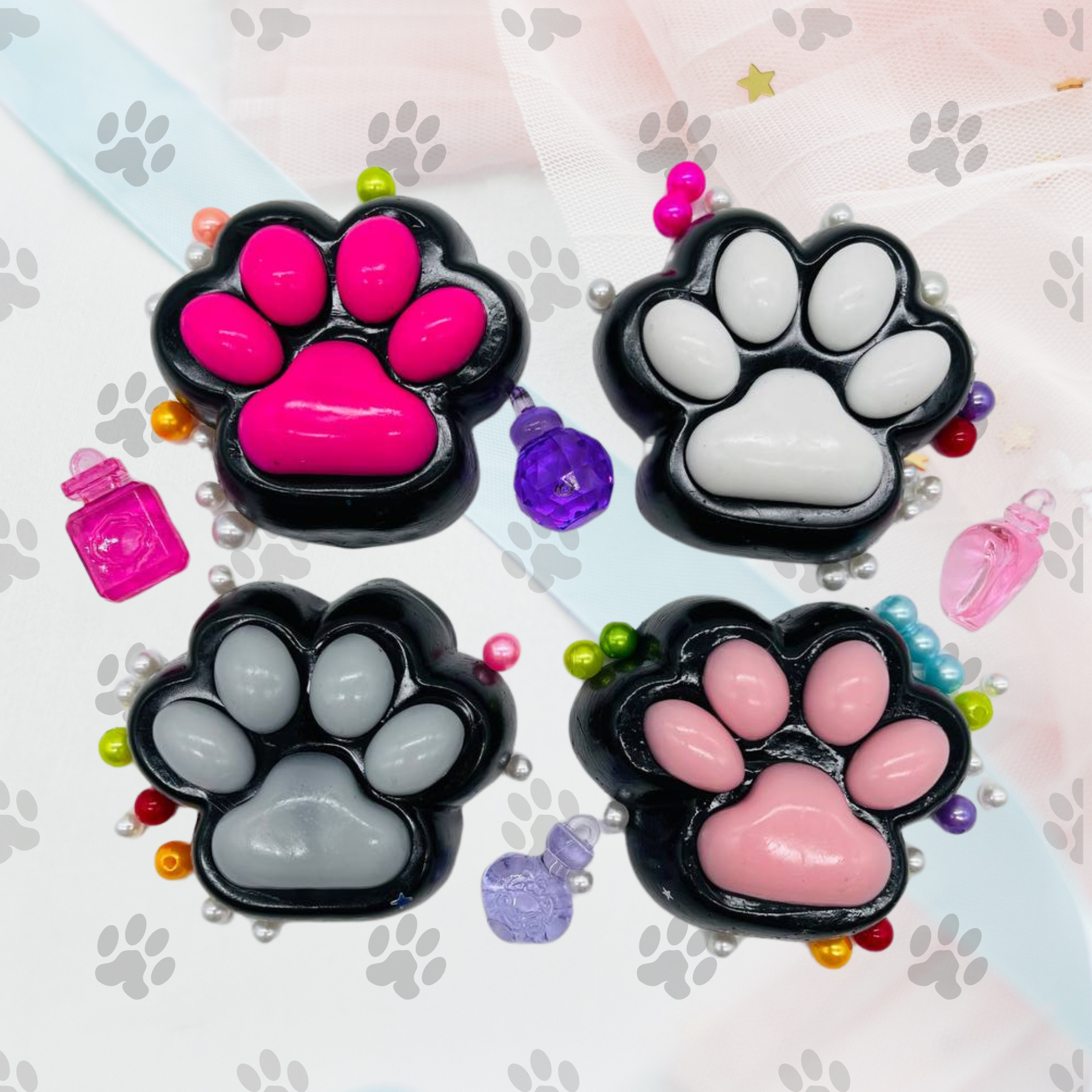 Отзывы на Игрушка антистресс для рук сквиш лапка котика черный набор из 4 штук