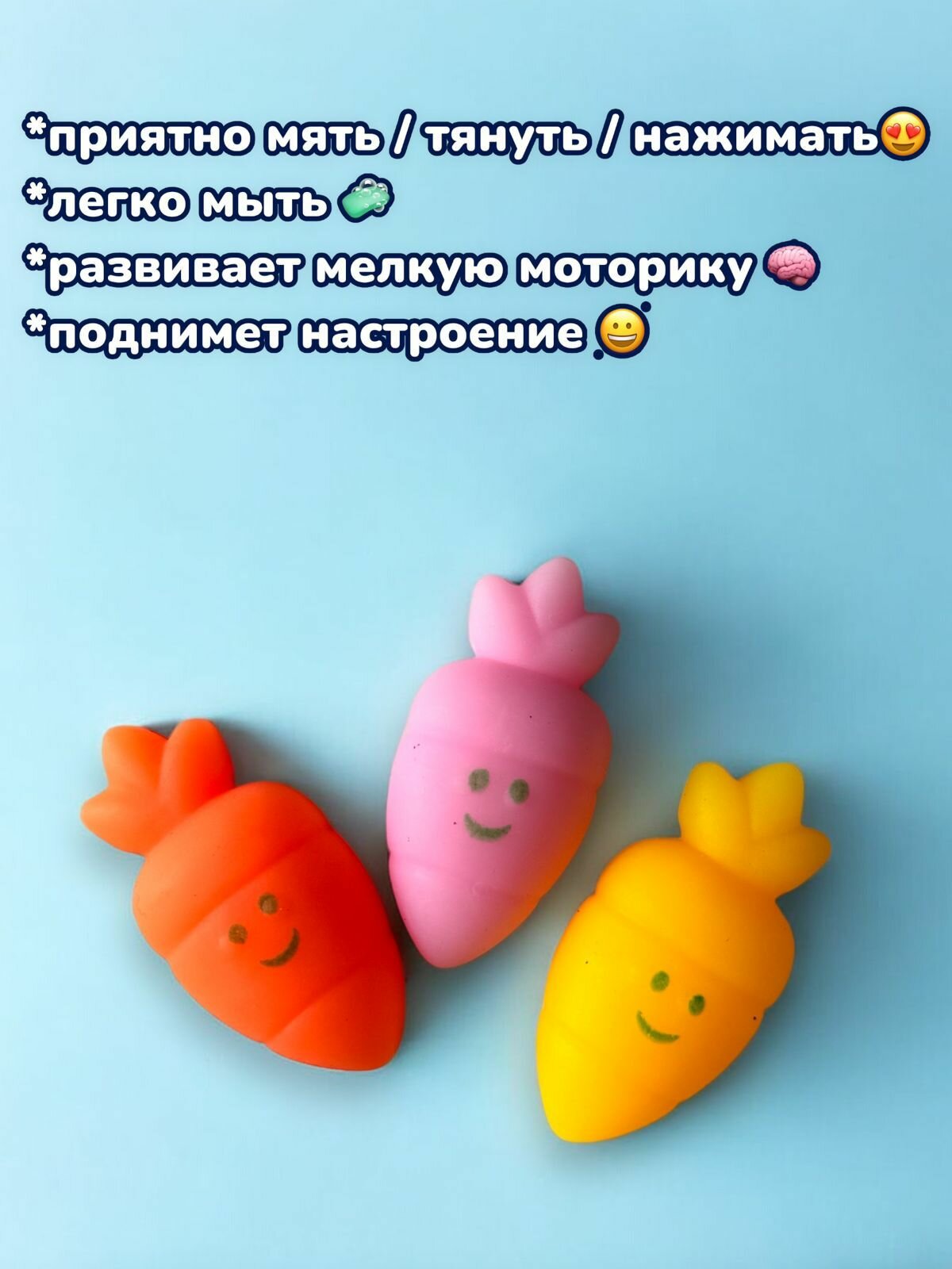 Сквиши мялка антистресс игрушка Морковка, набор 3 шт. информация: