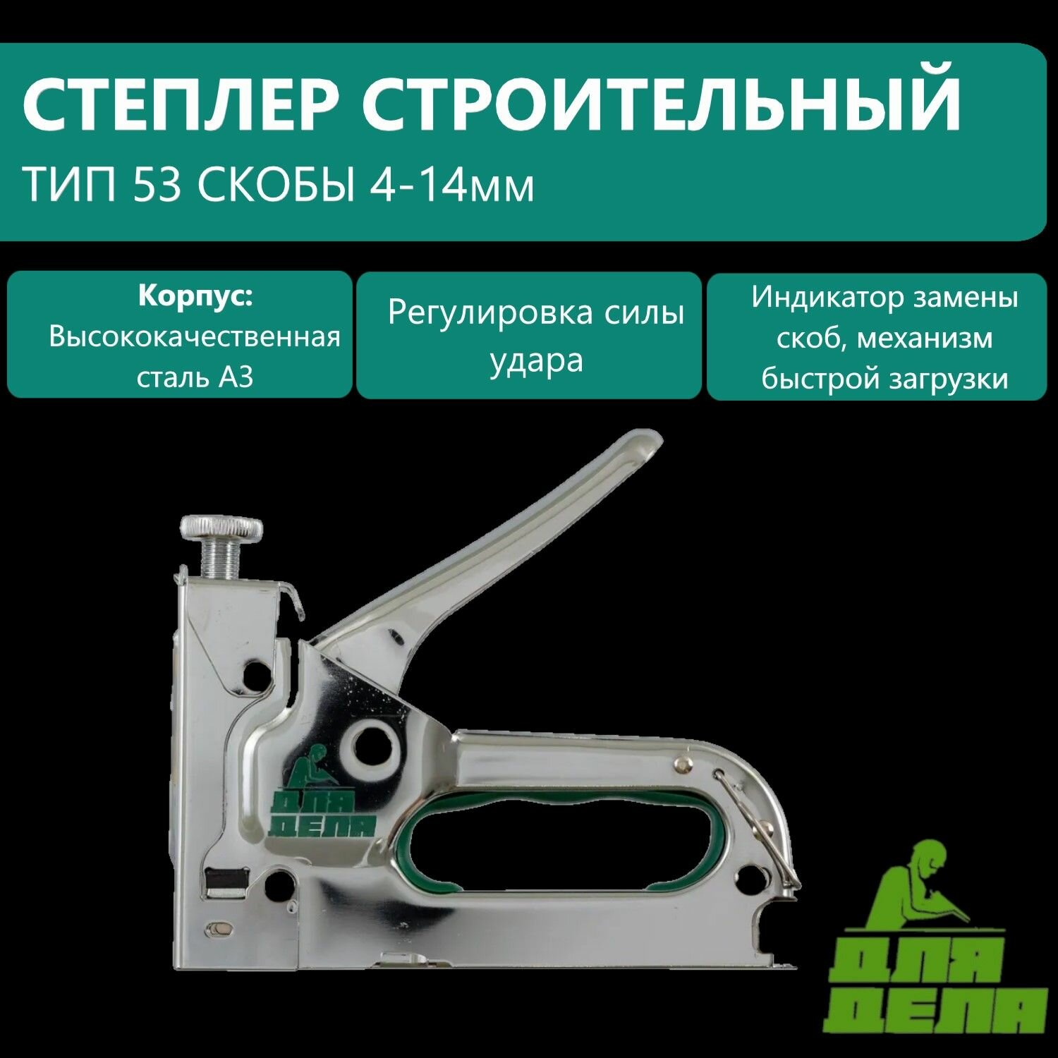 Степлер строительный для дела, тип 53, скобы 4-14 мм металлический, регулировка удара информация: