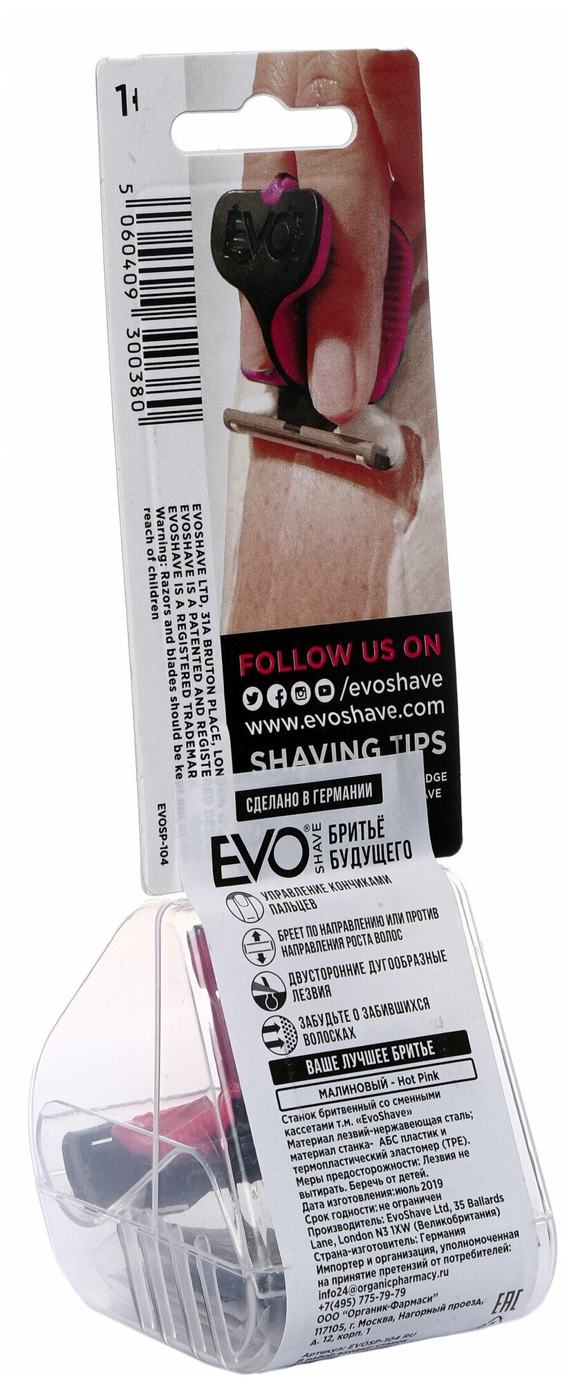 EVOSHAVE Безопасная Многоразовая "бритва + кассета" (ярко-розовая малина) Инновация безопасного бритья информация: