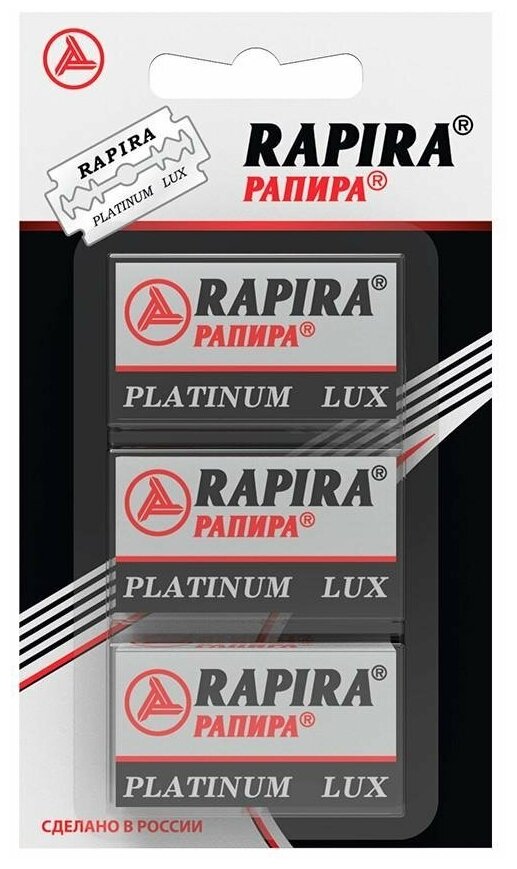 Лезвия RAPIRA PLATINUM LUX (Платина Люкс), 3 пачки по 5 лезвий (15 лезвий), двусторонние классические для Т-образного станка