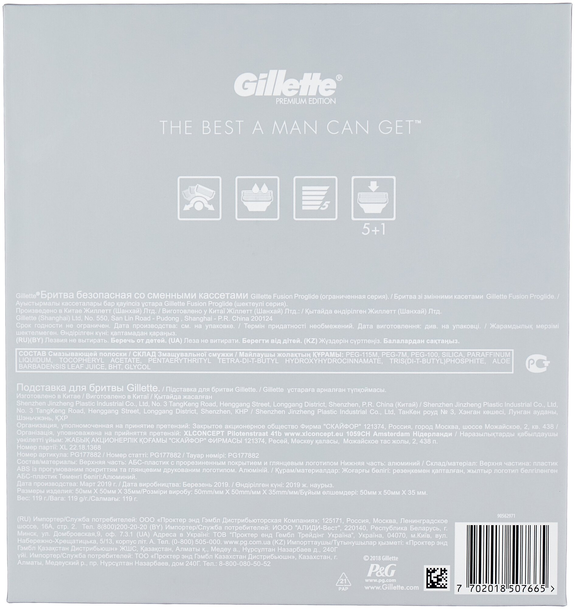 | Дополнительная информация | Бритва оснащена смазывающими полосками до и после лезвий |