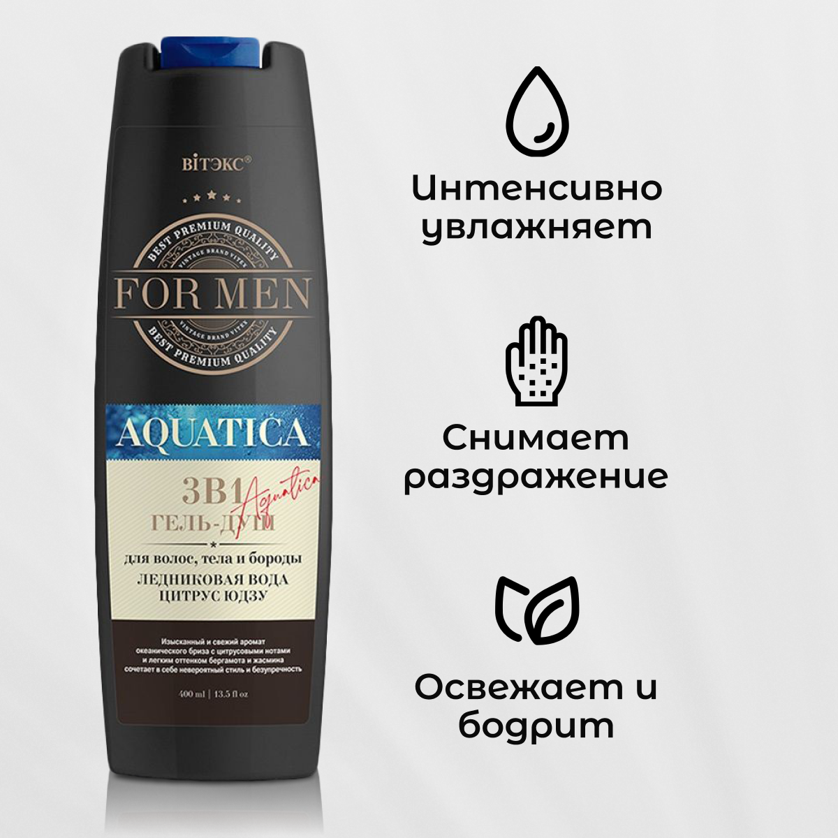 Гель для душа мужской Витэкс 3 в 1 для волос, тела и бороды мужской Ледниковая вода и цитрус юдзу 400 мл 2 шт информация:
