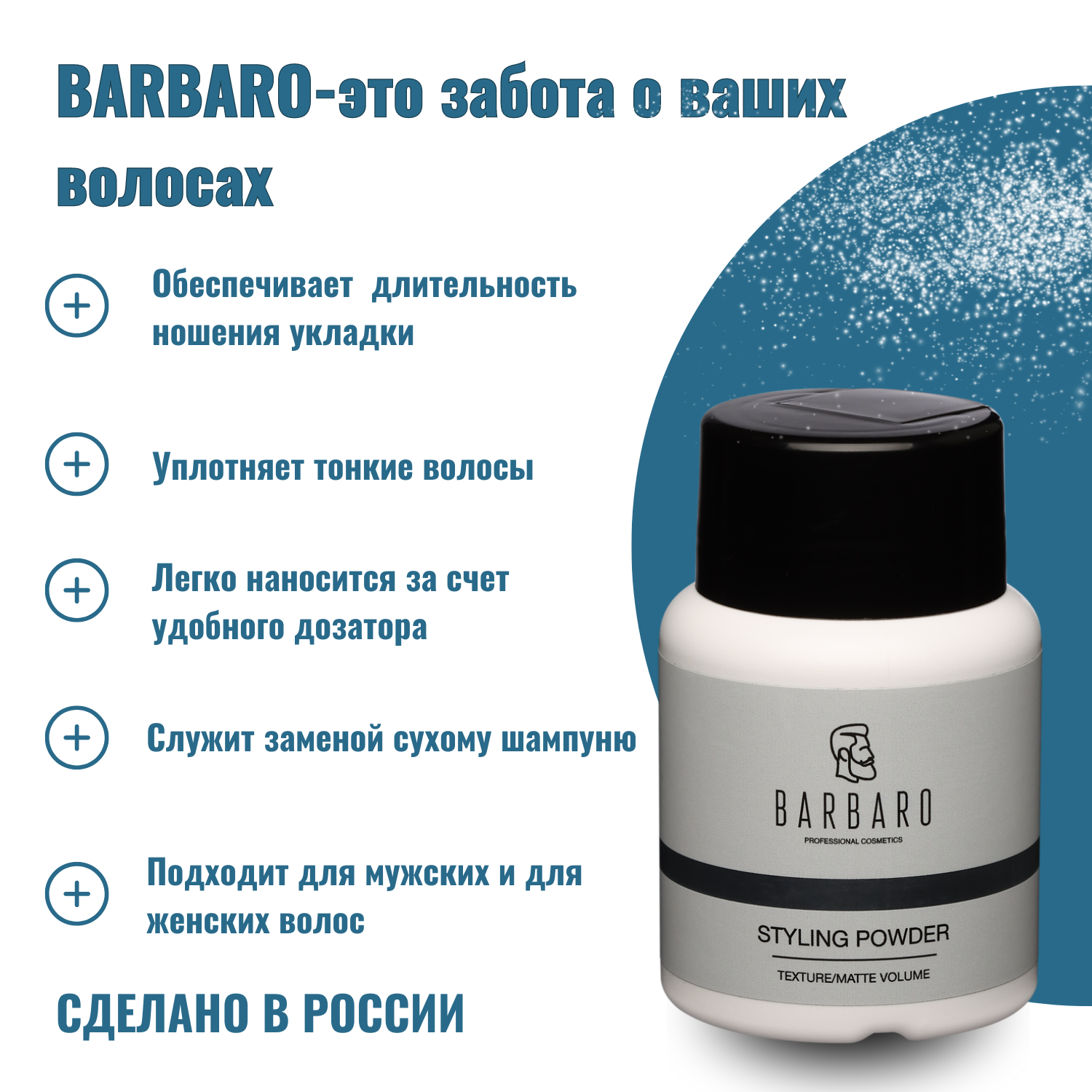 Пудра для укладки волос Barbaro, 20 гр. информация: