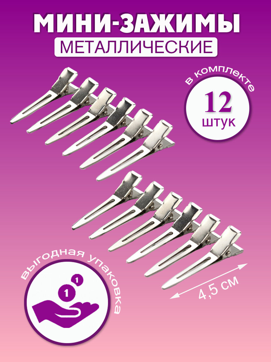 10 цен на Зажим для волос парикмахерский маленький 12 шт