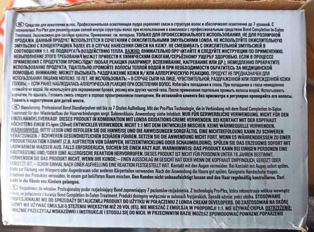 | Состав | potassium persulfate, sodium silicate, ammonium persulfate, magnesium carbonate hydroxide, sodium stearate, paraffinum liquidum,/mineral oil/ huile minerale, xanthan gum, algin, disodium edta, malic acid, silica, aqua/water/eau |