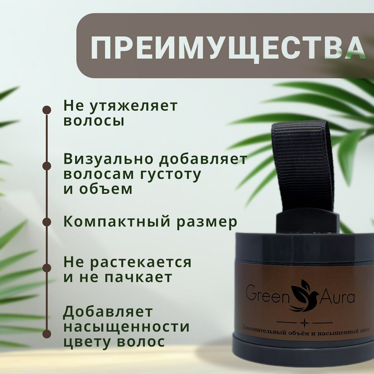 Пудра для волос Green Aura темно-коричневая информация: