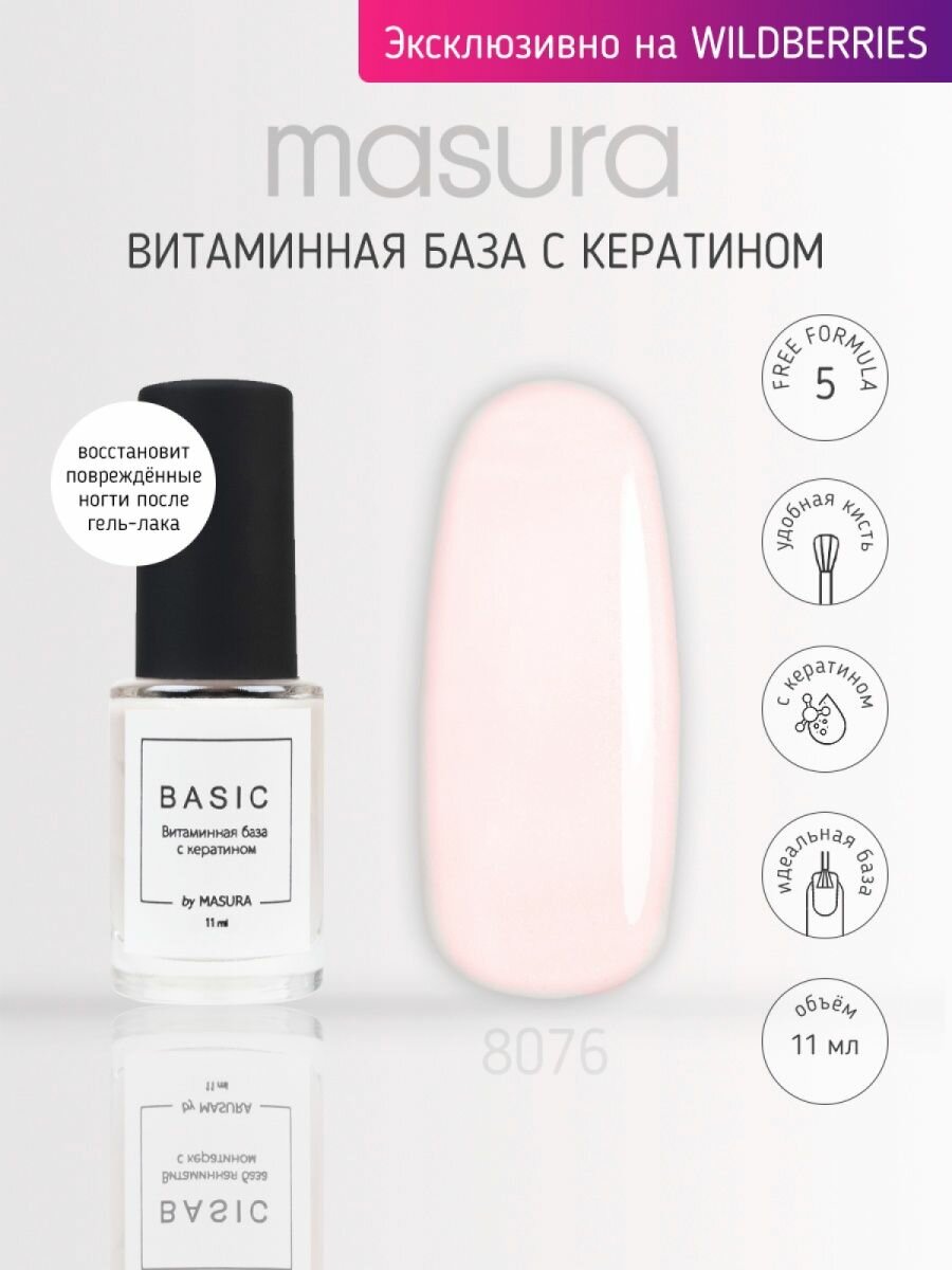 10 цен на Лак для ногтей укрепляющий Витаминная база для ногтей BASIC с кератином, 11 мл 8076S