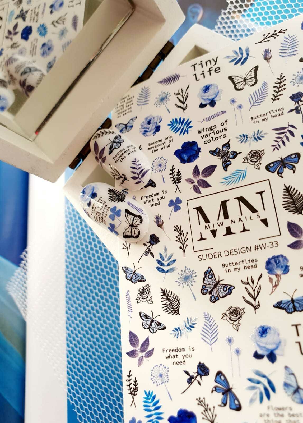 MIW Nails "Слайдеры для ногтей" водные наклейки для дизайна #W-33 цветной бабочки информация: