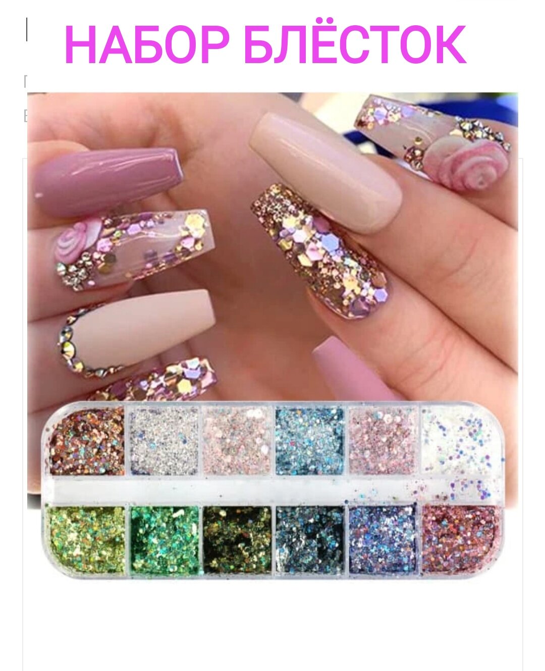 10 цен на Набор блесток для дизайна ногтей глиттер 12 цветов