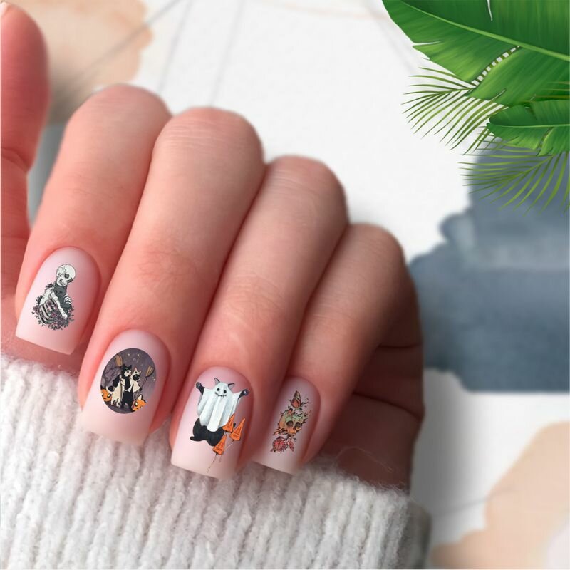 Отзывы на Наклейки для ногтей водные, слайдеры для маникюра, стикеры для дизайна - Halloween Хэллоуин тыквы скелет