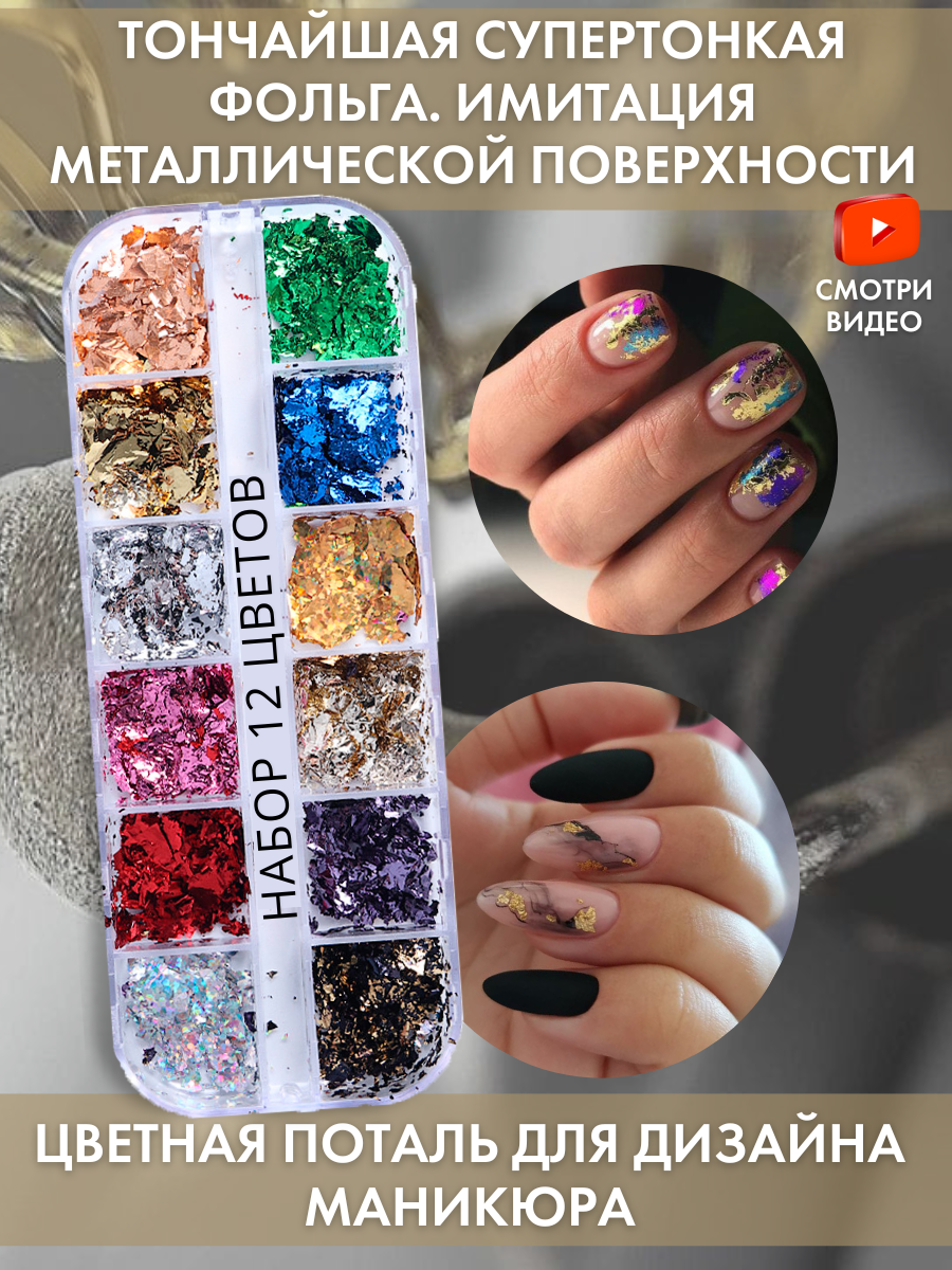 Отзывы на Декор для маникюра, цветная поталь для дизайна ногтей, аксессуары для маникюра, блестки (палетка 12 секций)